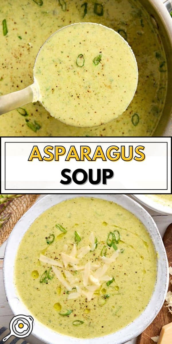 This asparagus soup recipe is deliciously fresh, creamy, and easy to make. I sauté asparagus and green onions before simmering them in vegetable broth with a squeeze of lemon for brightness. Then, most of the soup is blended until smooth with cream cheese (and spinach for some added nutrients!), but I always reserve some asparagus and green onion to stir in at the end for a bit of texture. Finish each bowl with a sprinkle of Parmesan, and you’ve got a delicious homemade soup that will knock ANY canned soup out of the water!