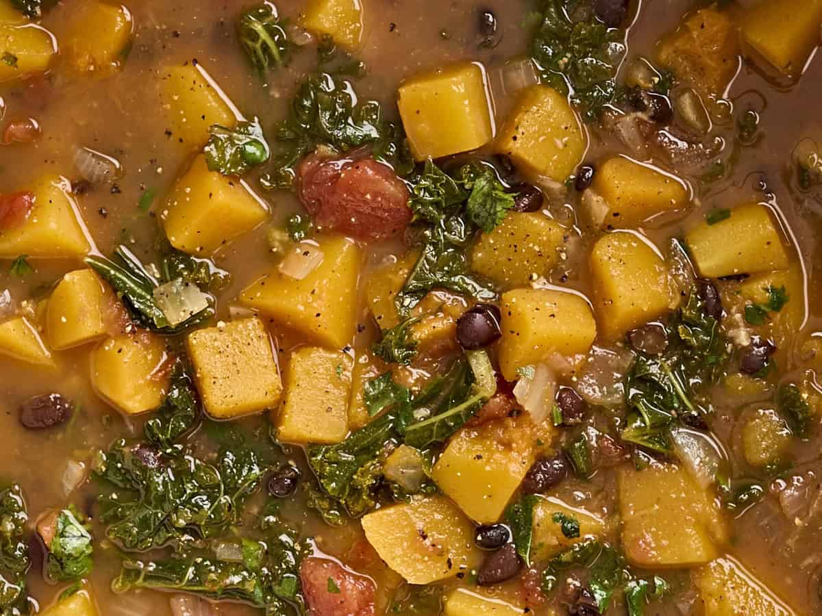 - Sweet potatoes can easily be substituted for the butternut squash in this recipe. This would make it like a soup version of my sweet potato black bean skillet! I’d cut the sweet potatoes into ¾-inch cubes and simmer as directed below. This should be more than enough time for them to become fork-tender, but you can go slightly longer if needed.