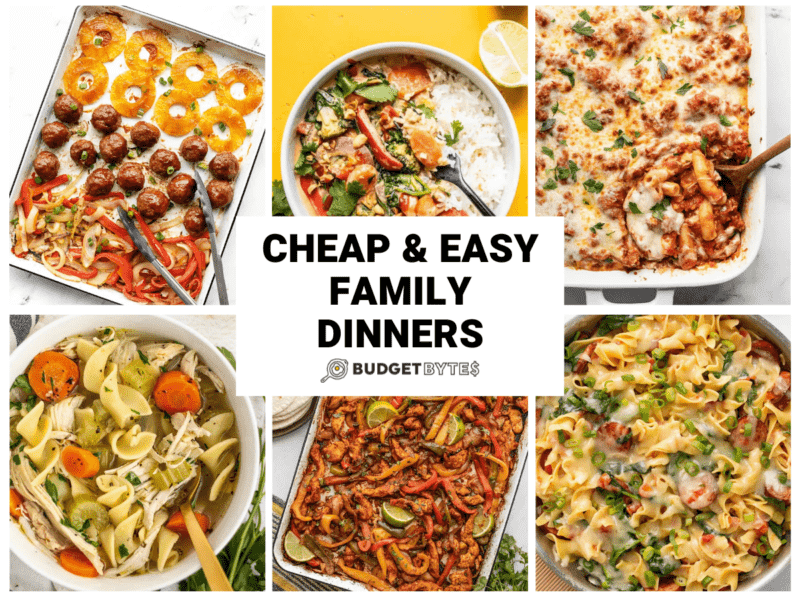 Feeding a family on a tight budget is NO JOKE! We created this Cheap and Easy Family Dinners roundup to help keep dinnertime fresh and alleviate that recipe rut. Every delicious recipe in this round up comes together fast, requires minimal hands-on prep time, and makes at least four big servings for about what you’d spend for one serving at a restaurant. WIN!