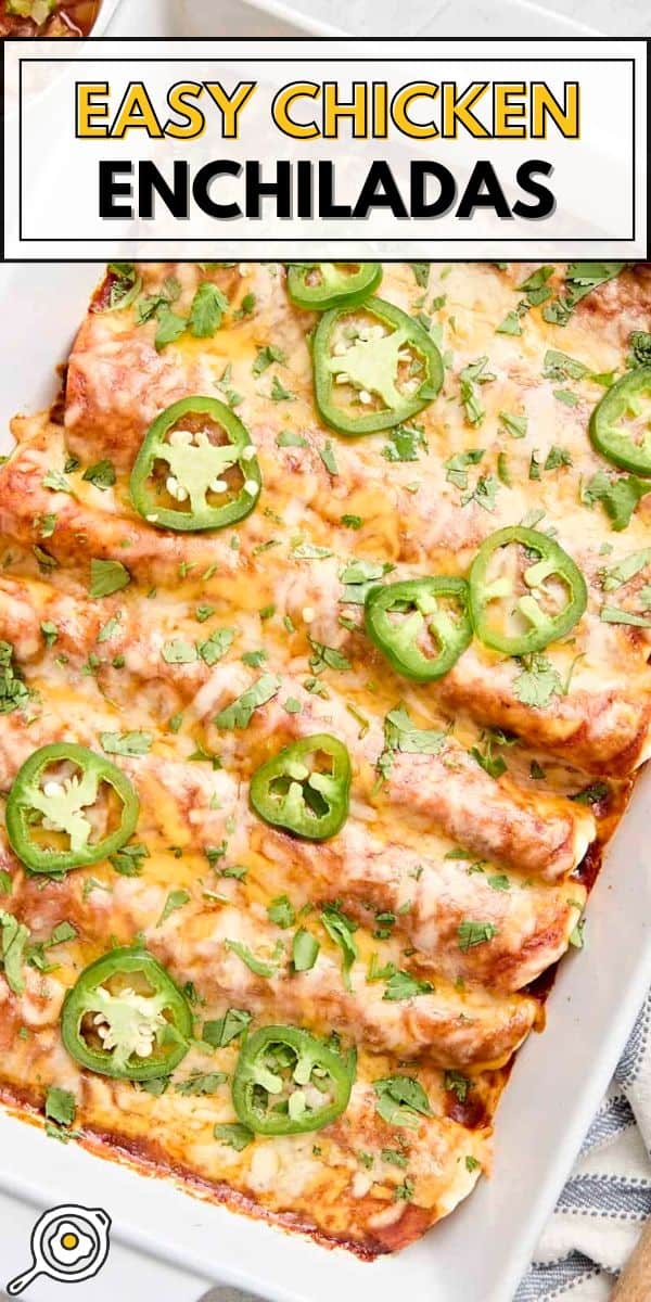 I made these just as the recipe was written and then added the sliced jalapenos to the top before baking. They were great and I will use this as my go-to Chicken Enchilada recipe. Next time I will make the sauce from scratch!!