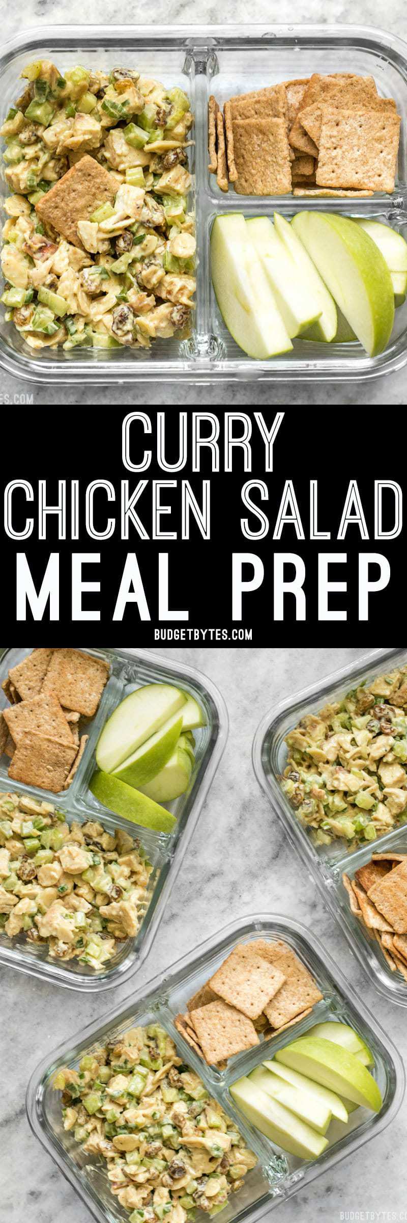 Hey guys! Time for Sunday meal prep again! This week I wanted to prepare a lunch that didn’t need reheating, so I thought it was a great time to revisit one of my favorite old recipes, Curry Chicken Salad. For the Curry Chicken Salad Meal Prep I paired the chicken salad with some crackers for dipping and a tart green apple, which perfectly compliments the earthy chicken salad. It’s a simple lunch box that holds up well in the fridge and doesn’t require a lot of prep.