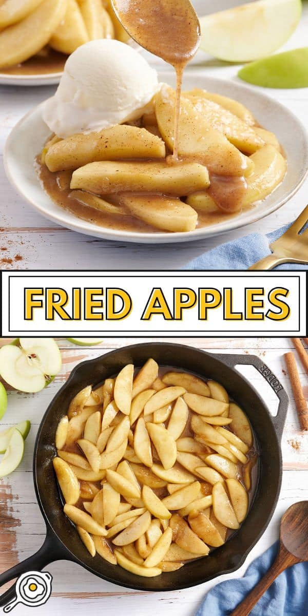 Think of these Southern fried apples like apple pie filling without the crust or the stress. Instead of making something that takes planning ahead, I can whip these up whenever I’ve got a few apples sitting on the counter. With only six ingredients, including the apples, butter, sugar, and spices, you get the same warm, spiced comfort in about 25 minutes of simmering on the stove! Oh, and don’t even get me started on how incredible the kitchen smells while they’re cooking. These easy fried apples taste and smell just like fall. 🤤
