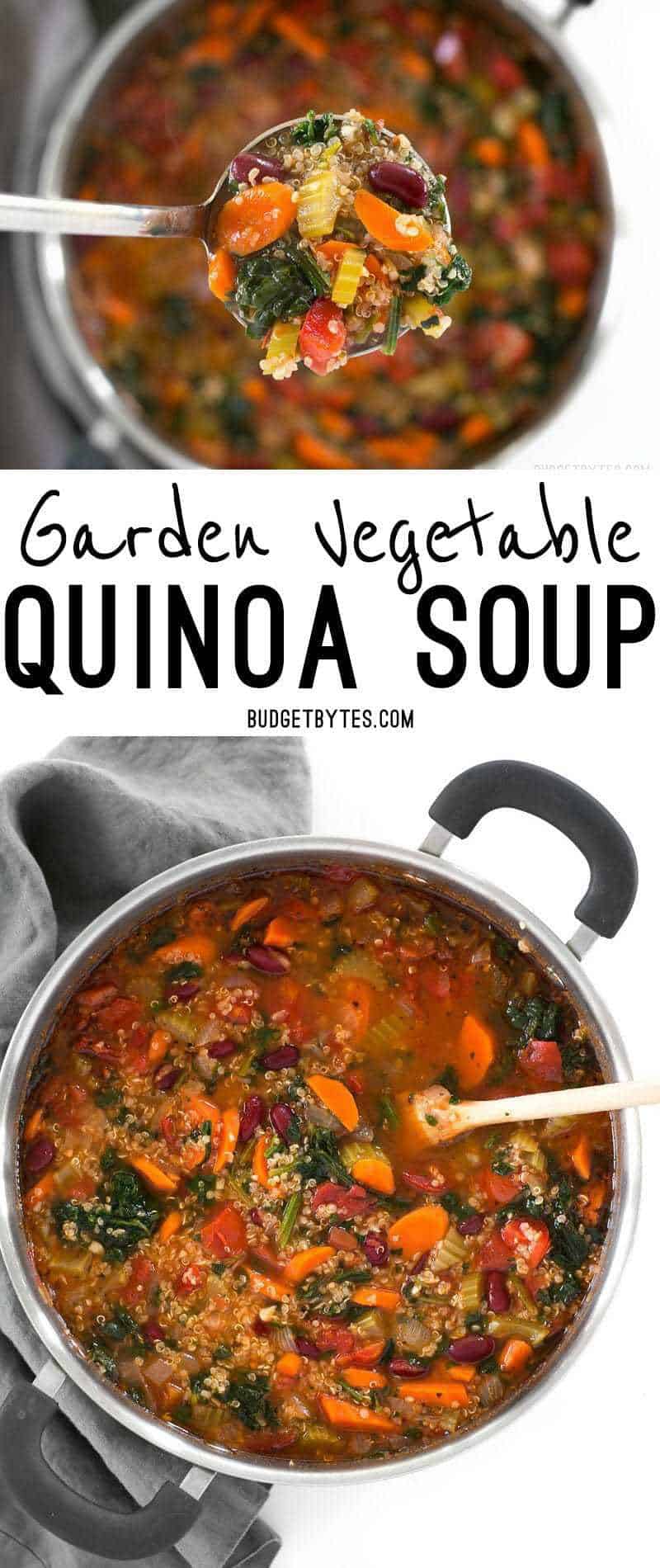 This Garden Vegetable Quinoa Soup will freeze great, so don’t be frightened by the 10 cup yield! That just makes it great for your weekly meal prep. Make a huge batch, stash 4-5 portions in the fridge for the week ahead and then freeze the remaining portions for the future when you’re running low on funds or time to cook.