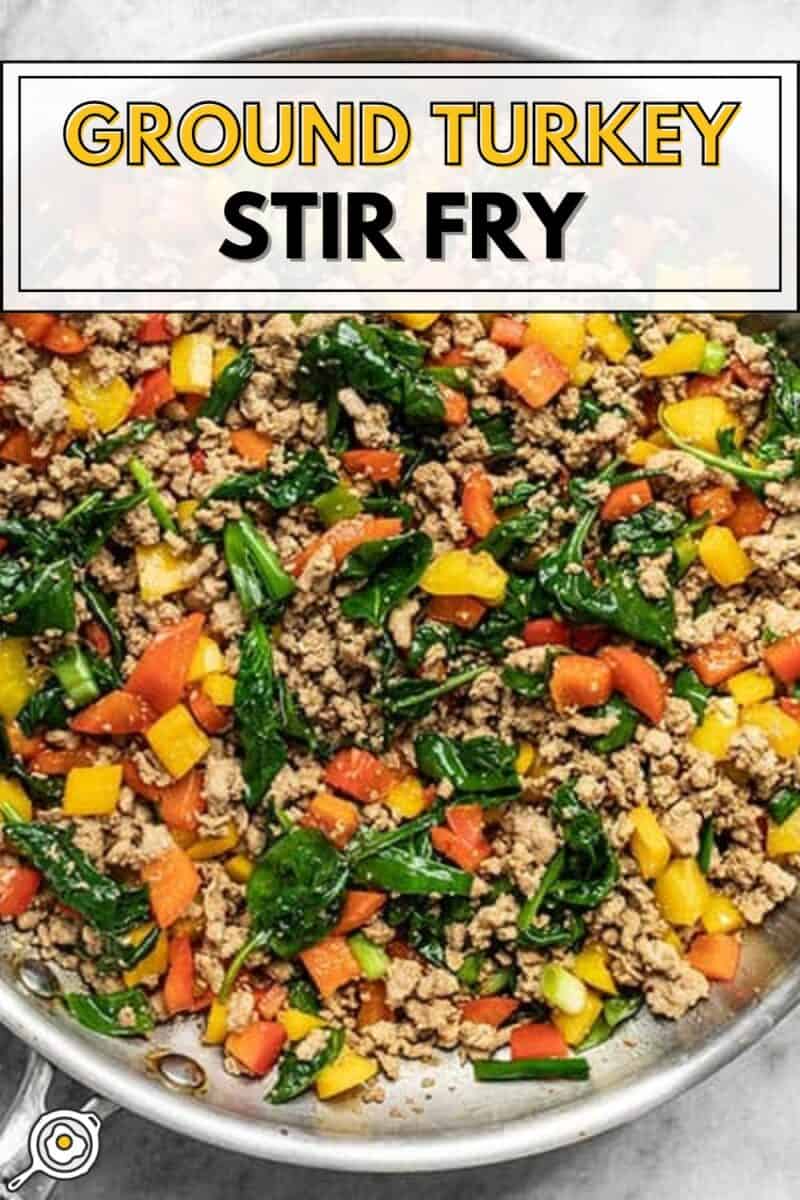 - Pour the stir fry sauce into the skillet. Continue to stir and cook the turkey and vegetables until everything is coated in sauce and the spinach is fully wilted (about 2 minutes more).