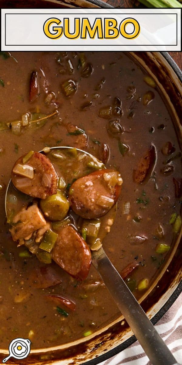 Gumbo is traditionally served with white rice, as I do in this recipe. I also like to sprinkle a few sliced green onions and parsley on top to finish my bowl off. It’s already very filling and hearty all on its own, so I don’t usually add any more sides. However, I know some people love to serve this dish with a creamy Cajun potato salad on the side. A slice of French bread or garlic bread would also be great for dipping into the stew!