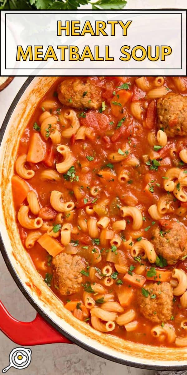 It’s no secret just how much I love a good meatball recipe, and this one is an oldie but a goodie. My Hearty Meatball Soup is packed with tender, Italian-style turkey meatballs simmered in a rich tomato-based broth and plenty of veggies and pasta to make it super filling and totally budget-friendly. It’s an easy one-pot dinner the whole family will love! And like most of my recipes, this flavor-packed soup leans on pantry staples and freezer-friendly ingredients to keep things easy on the wallet.
