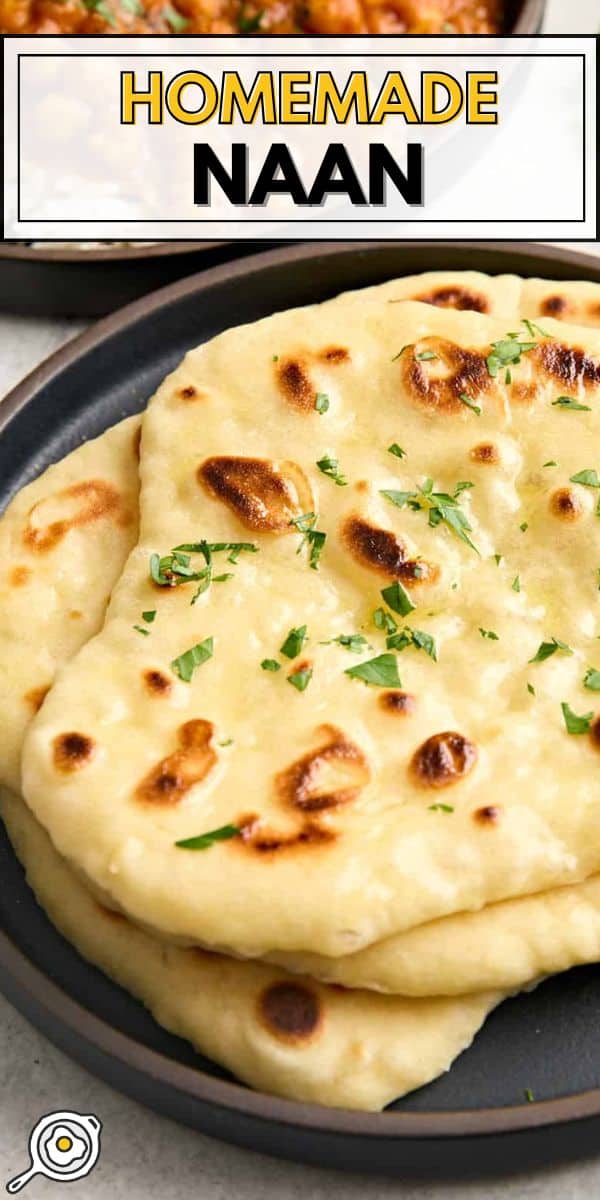Naan is a traditional flatbread from South and Central Asia, traditionally baked against the hot clay walls of a tandoor oven for that signature bubbly texture. In my recipe, I make my dough with yogurt for a subtle tang, an egg to keep it extra soft and pillowy (but you can leave the egg out if desired), and a touch of yeast to help it puff up beautifully in a hot skillet. It’s easy, satisfying, and perfect for scooping up curries, making wraps, or enjoying warm with a swipe of butter or ghee. 🤤