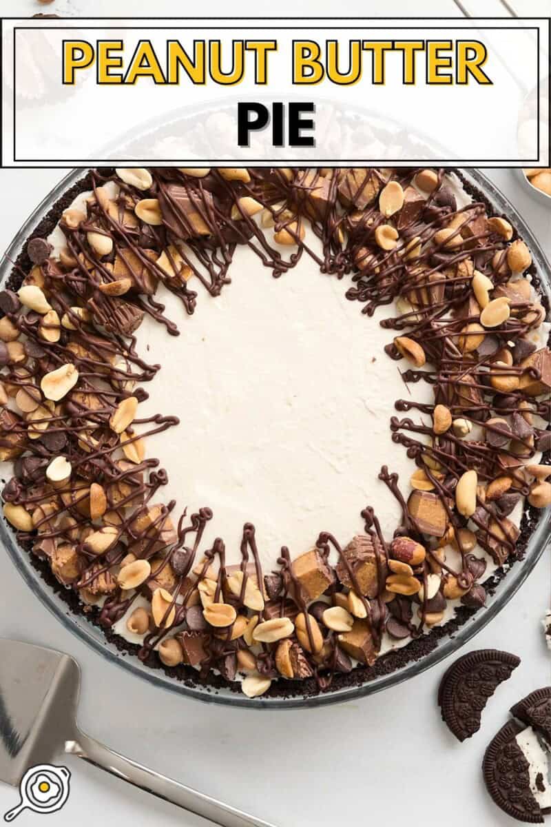 - Toppings: Chopped mini Reese’s peanut butter cups, peanut butter chips, and peanuts are drizzled in melted chocolate chips to make the ultimate pie topping. You can also use regular-sized Reese’s cups (chopped into small pieces) or whatever leftover chocolate Halloween candy you have lying around!