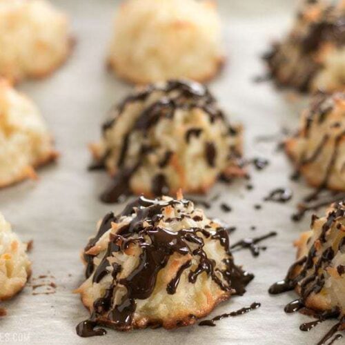 These are amazing! The orange zest… wow. I used unsweetened coconut from Trader Joe’s and lowered added sugar to slightly over half a cup, and still found them a bit too sweet. I have a major sweet tooth, but tend to cut sugar in recipes because to me it sometimes overshadows over flavors. In any case, will definitely make this again, also with unsweetened coconut, and with probably just half a cup of sugar. Had a hard time drizzling the chocolate, so I just plopped some chocolate on top of each macaroon.