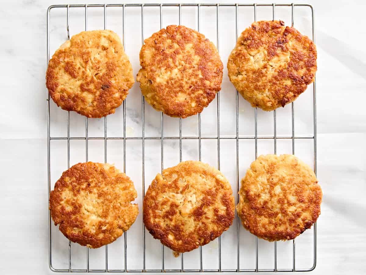 - Rest the cooked patties on a wire rack. Serve hot with extra lemon wedges (optional) and your favorite sides.