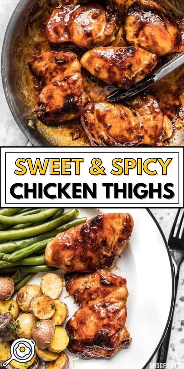 This sweet and spicy glazed chicken thighs recipe comes together in just minutes for a quick and easy weeknight dinner you’ll want to make on repeat. The simple seasoning and quick cooking render the chicken remarkably tender, juicy, and loaded with flavor. In three simple steps, I can transform simple everyday chicken thighs into a delicious weeknight meal.