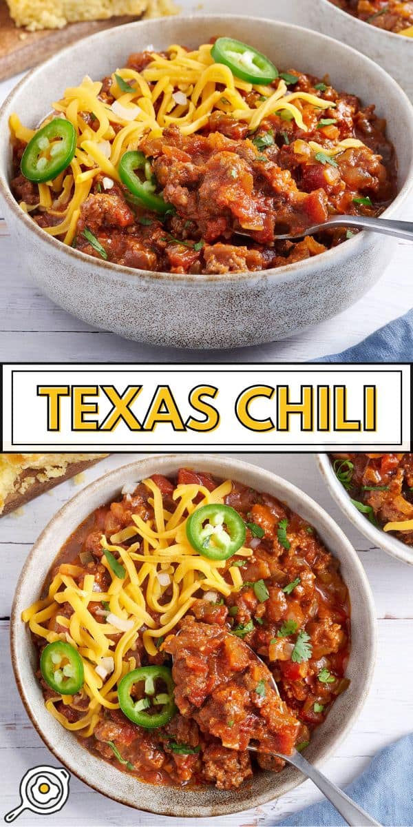 I love serving my easy Texas chili recipe with a warm slice of cornbread. But if I want something a little more filling, I’ll spoon it over a baked potato or pair it with a side of Spanish rice. It turns a cozy bowl of this chili into a full meal without much extra effort (my favorite kind of meals!)